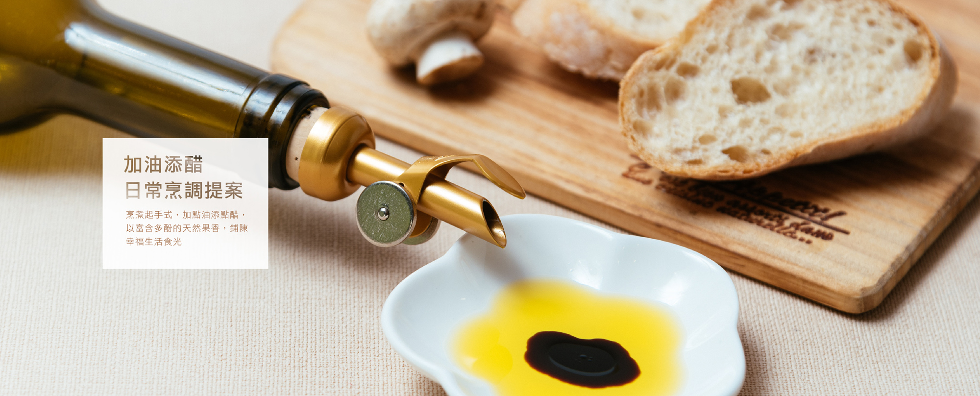 以現盛裝,新鮮現嚐的方式,讓喝下的每一口橄欖油與果醋,都能吃出渾然天成、健康零負擔的好滋味。